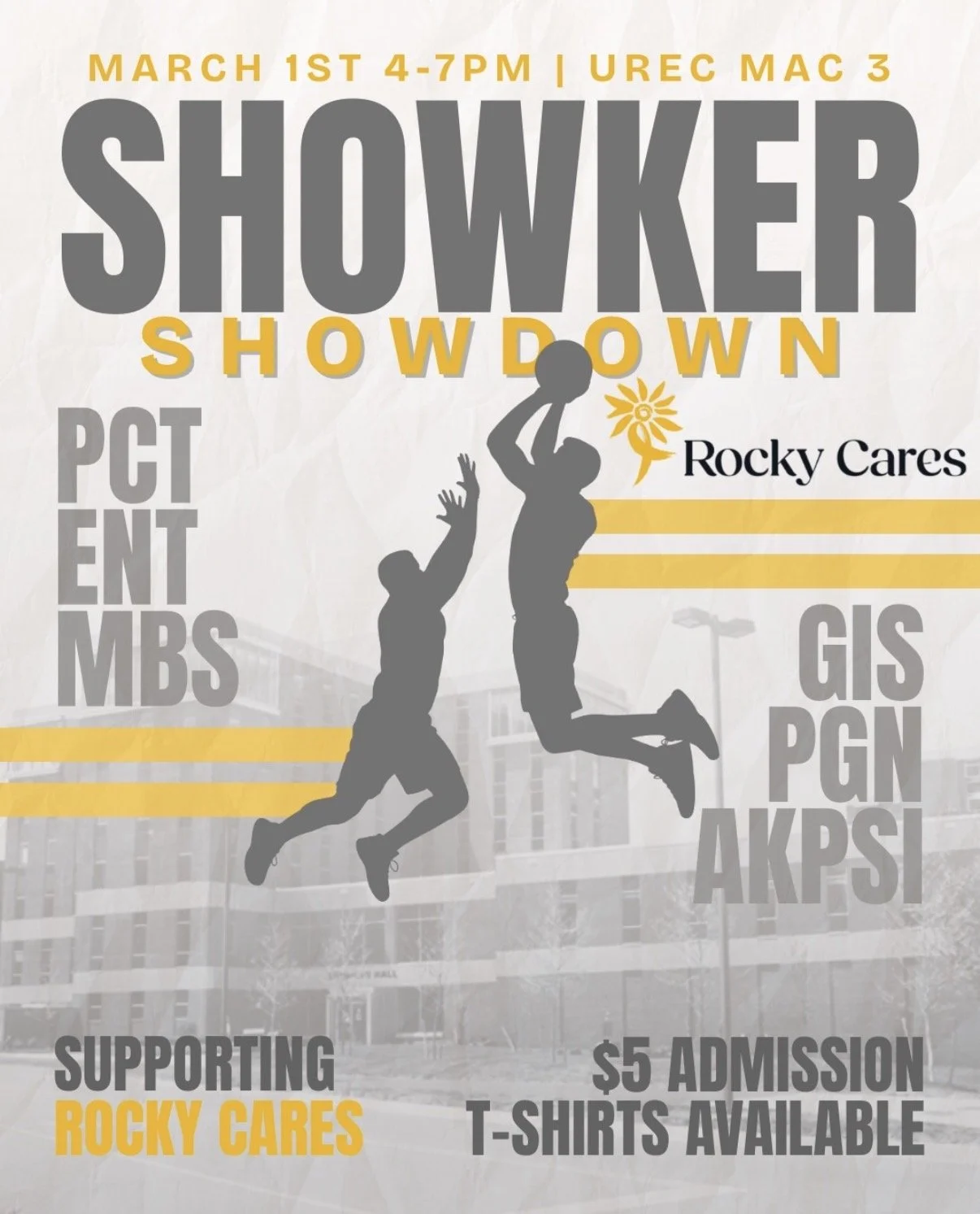 Showker Showdown Sunday, March 1, 2026 4:00 PM 7:00 PM Google Calendar ICS Thank you to the SIX business fraternities at James Madison University who came together at the Showker Showdown basketball tournament in support of the Rocky Cares foundation.
